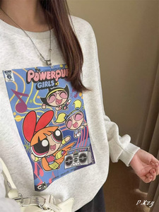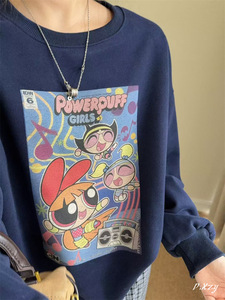 025慵懒风圆领卫衣女秋季新款薄款宽松韩版oversize女式上衣bf外