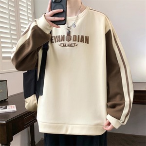 美式潮牌圆领卫衣男春秋季潮流宽松拼色大码长袖T恤青少年上衣服
