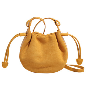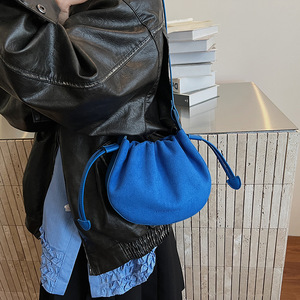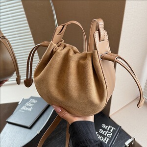 2025新款韩版云朵包包包女拼色麂皮绒水桶包休闲百搭单肩斜挎包