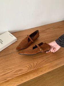 2025新款平底尖头豆豆底坡跟简约复古搭扣粗跟皮条缠绕玛丽珍女鞋