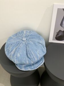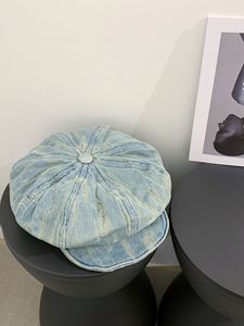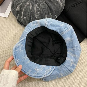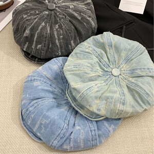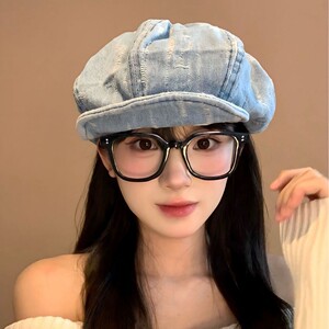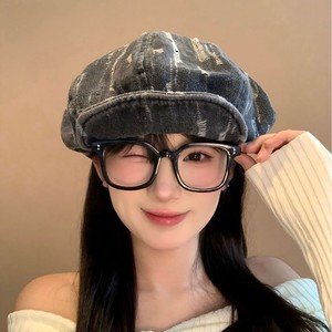 日系做旧破洞牛仔八角帽女复古时尚百搭贝雷帽显脸小云朵画家帽子