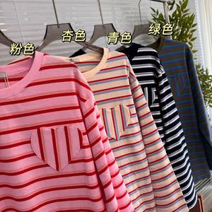 现货韩国Egg复古百搭通勤条纹长袖T恤女 25宽松叠穿秋季打底上衣