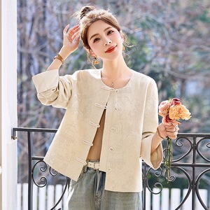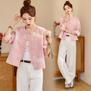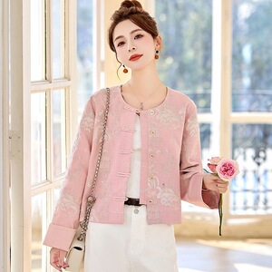 新中式国风短款外套女2025新款秋装高级感小香风唐装时尚提花上衣