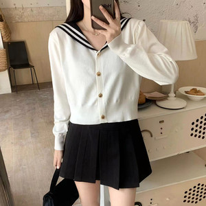不出错No errors 海军领针织上衣女法式撞色小众设计毛衣2025秋新