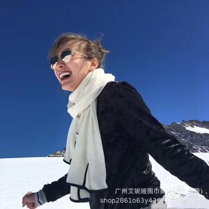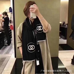 高品质娜扎金智妮吴昕同款小香围巾女黑白双C羊绒百搭针织长披肩