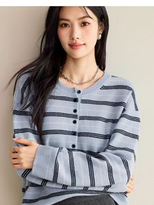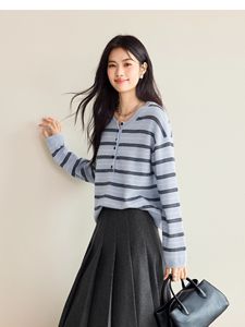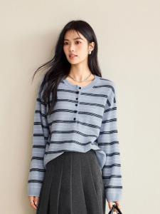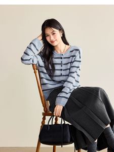 伊*L女装2025秋新品圆领条纹羊毛套头休闲针织衫女1G9932581
