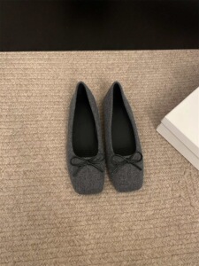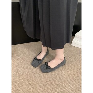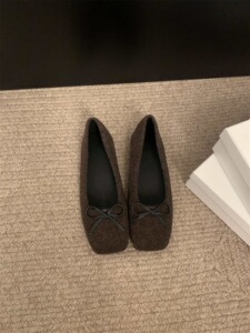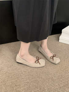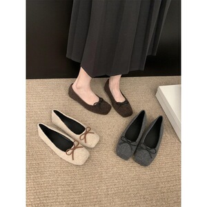 温柔晚晚风妮子浅口小单鞋2025春秋冬季蝴蝶结软底方头豆豆鞋瓢鞋
