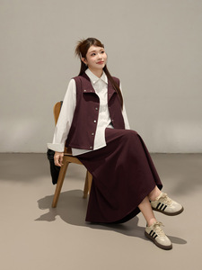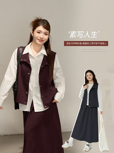 复古百搭立领马甲抽绳裙子秋装女装新款胖mm大码女装套装65493