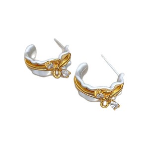 18k真金电镀镶钻蝴蝶结c形耳钉法式气质时尚耳环轻奢高级感耳饰女