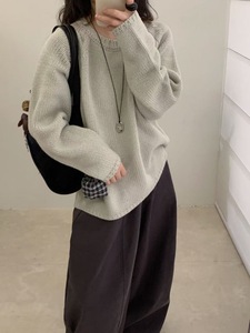 韩系棉感韩标圆领插肩袖纯色套头毛衣针织衫女G1545