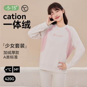 A类少女保暖内衣女生棉加绒初高中学生抗菌发热大童秋衣秋裤套装