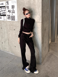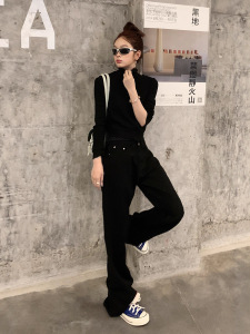 黑色素感微喇牛仔裤女2025自然腰显瘦垂感休闲直筒牛仔裤子