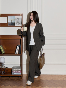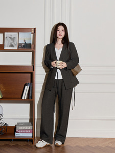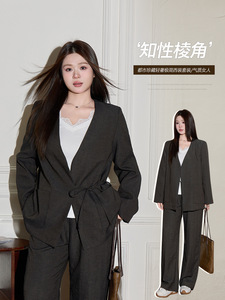 轻奢格调老钱风通勤修身西装秋装女装新款胖mm大码女装套装65475