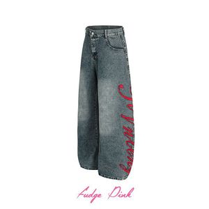 Fudge Pink 2025秋季New美式复古撞色字母刺绣牛仔长裤