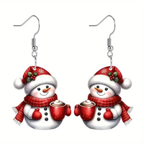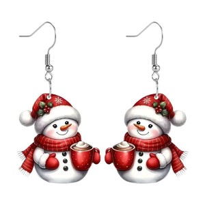 跨境热卖冬季雪人亚克力圣诞节耳环可爱新年节日氛围卡通百搭耳饰
