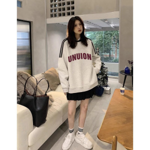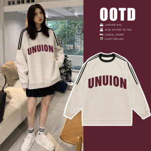 三条杠趣味卡通孕妇卫衣秋冬新款外穿中长款宽松慵懒印花原宿风