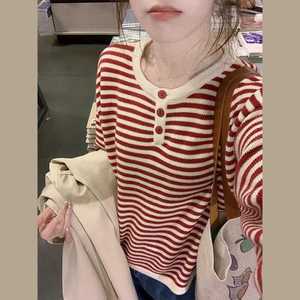 红色条纹毛衣针织衫女早秋氛围感穿搭2025设计感气质法式长袖上衣