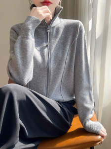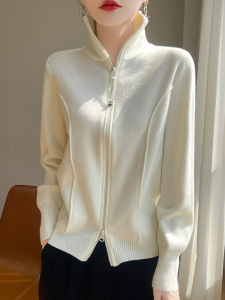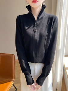 法式双拉链立领针织开衫秋装女装新款外套加厚保暖高级感长袖上衣