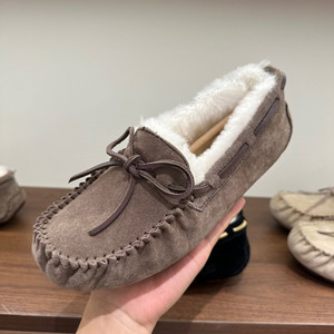 桑坡村雪地靴皮毛一体豆豆鞋女冬平底棉鞋羊毛雪地靴一脚蹬毛毛鞋