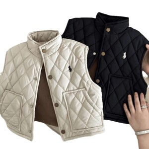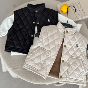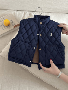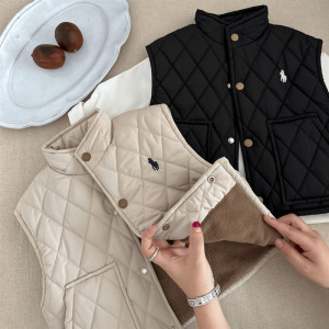 悠米家儿童马甲2025秋冬新男女童刺绣潮牌休闲菱格加绒棉背心外套