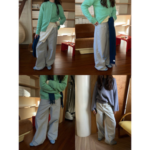 POXFFEE/砂洗质感磨毛休闲裤长裤女秋冬阔腿直筒宽松bf慵懒风裤子