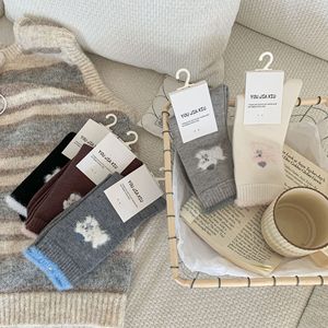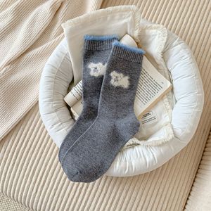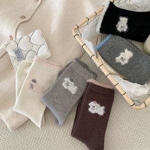 10双43元羊绒袜子女日系可爱毛绒卡通小狗秋冬百搭加厚中筒羊绒袜