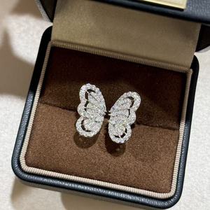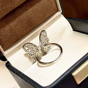 S925纯银 满钻蝴蝶开口戒指轻奢百搭精致气质闪钻羽翼翅膀