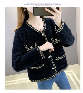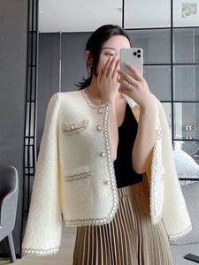 小香风外套时尚百搭仿水貂毛气质外套韩版宽松单排扣呢外套A7280