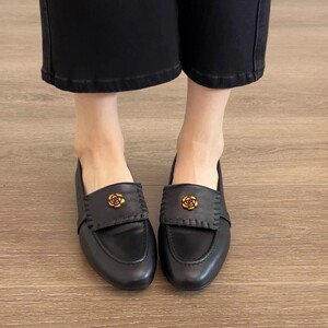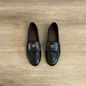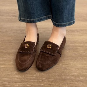 现货~英伦风复古小众设计山茶花软皮软底单鞋百搭通勤低跟乐福鞋