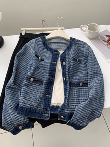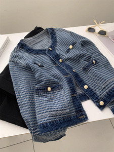 洋气复古小香风牛仔外套女时髦显瘦圆领小金扣短款上衣25秋季开衫