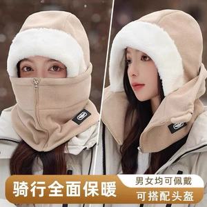 帽子女冬季骑行电动车保暖神器加厚棉帽防风防寒面罩冬天雷锋帽男