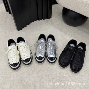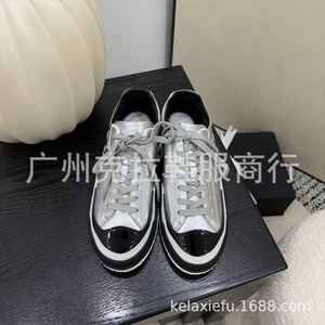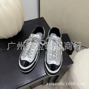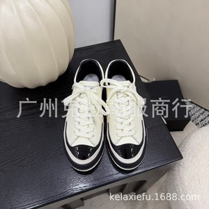 高定2025年新款小香风德训鞋小白鞋真皮拼色平底休闲运动鞋阿甘鞋