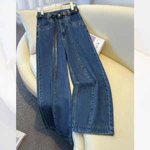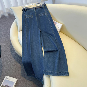 高端牛仔蓝牛仔阔腿裤女春秋季2025新款版型好看的复古窄版直筒裤