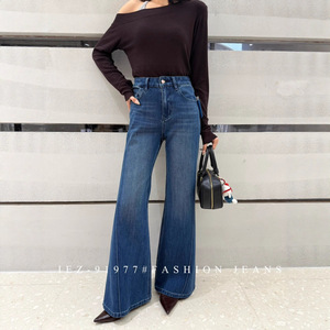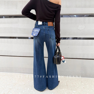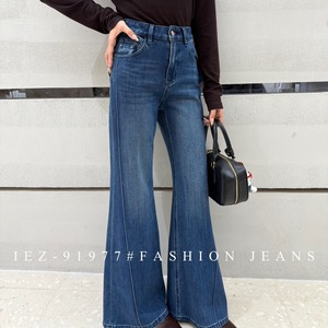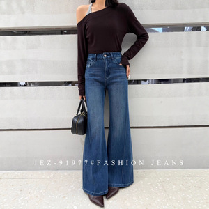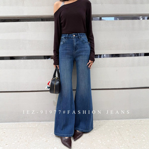 2025年秋新款IEZ91977牛仔裤女欧货高腰四面弹鱼骨边不贴腿喇叭裤