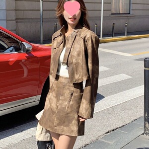 咖色外套+短裙 版