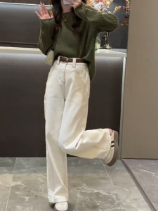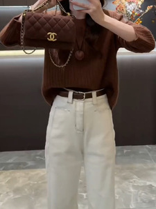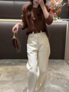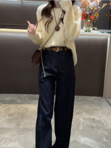 设计感后开叉套头针织毛衣+新款宽松时尚休闲显腿长直筒牛仔裤