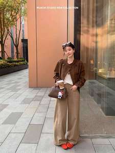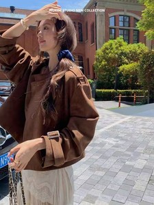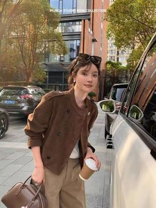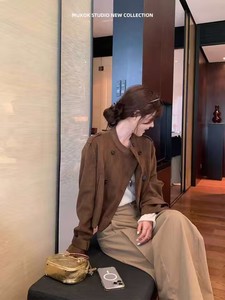高级感时尚复古麂皮绒短款风衣外套女2025秋新款韩系宽松立领上衣