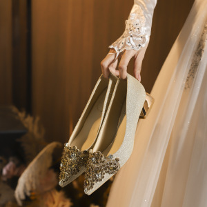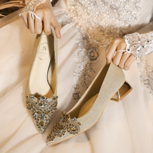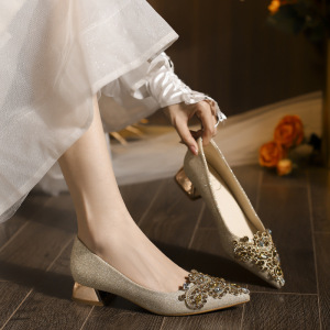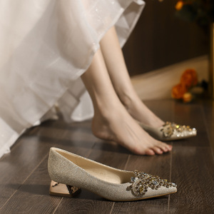 C333-67女2025年新款宴会水晶亮片婚鞋尖头浅口百搭新娘单鞋34-43