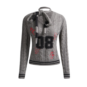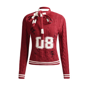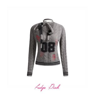 Fudge Pink 25冬季New美式复古辣妹个性图案设计套头毛衣