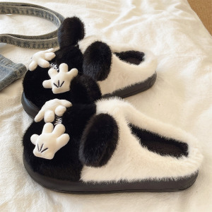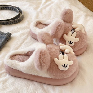 厚底毛毛拖鞋女冬季2025新款居家室内毛绒保暖防滑可爱手掌棉拖鞋