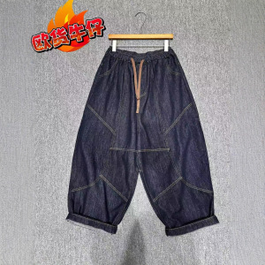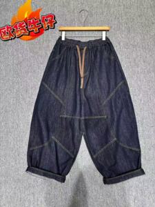2025秋季新款韩版宽松时尚牛仔洗水拼接松紧腰哈伦裤百搭休闲裤女