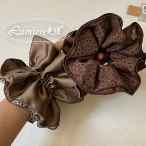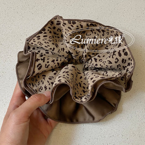 韩版韩式洋气时髦高级感豹纹缎面小蛮腰发圈复古老钱风丸子头绳女