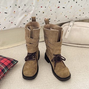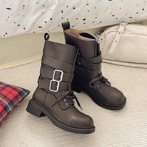 英伦风复古机车靴女2025年新款时尚百搭休闲粗跟厚底短筒骑士靴子