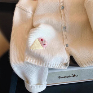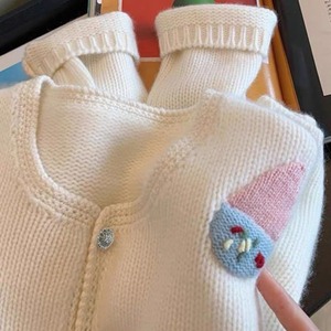设计感可爱冰淇淋刺绣针织开衫女2025秋冬新款减龄休闲毛衣外套潮