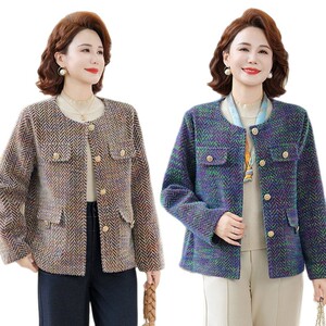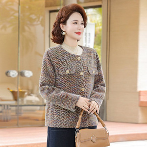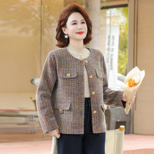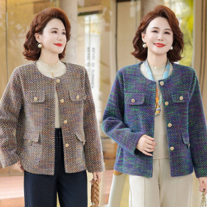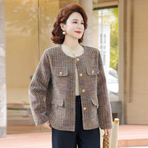 小香风外套女春秋中年妈妈秋装呢子短款大衣气质中老年人高贵上衣