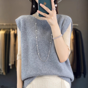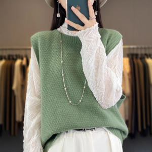 新款针织背心坎肩马甲女秋冬季2025外搭宽松洋气圆领叠穿无袖毛衣