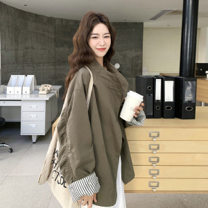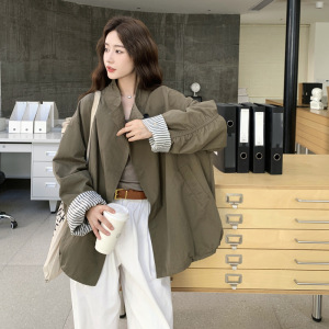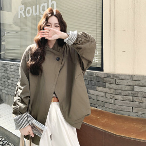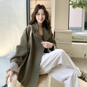 军绿色小个子休闲风衣女中长款2025年秋季新款宽松韩系时尚外套潮
