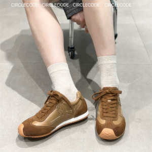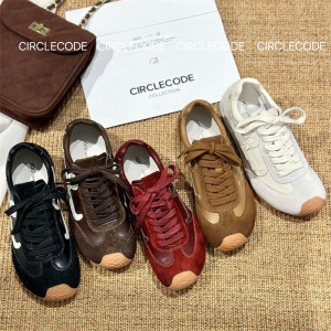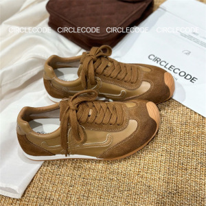 IG莱熙妮真皮德训鞋女新款丑萌复古阿甘鞋女轻便百搭休闲运动鞋潮