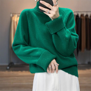 胖mm大码女装跨境韩版加厚毛衣女高领亮丝宽松插肩袖针织打底衫潮