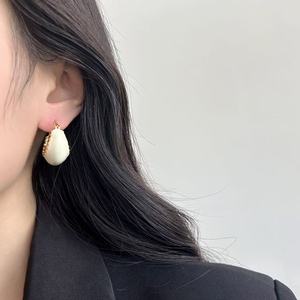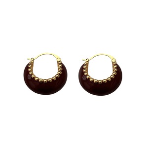 复古珠粒边酒红色耳环耳扣小众设计名媛秋冬简约清新气质女神耳饰